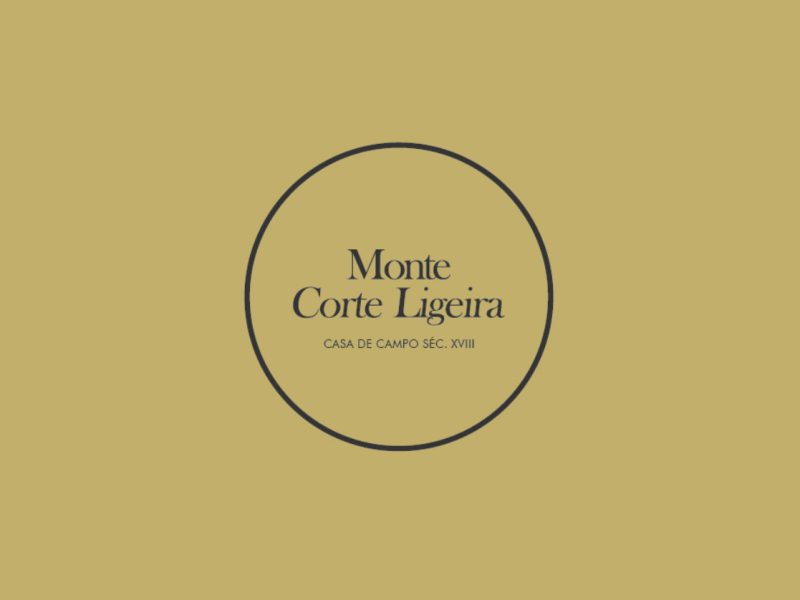 O logotipo e a identidade visual do Monte da Corte Ligeira capturam a essência da tradicional arquitetura alentejana e a rica herança cultural da região. Com uma paleta de cores dominada por branco e amarelo-ocre, o design reflete a fachada caiada da casa do século XVIII.